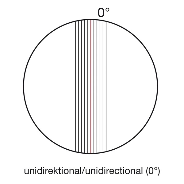 Unidirectional non crimp fabric, lying absolutely flat, almost 100 % utilisation of fibre properties, above all considerably higher compressive strength than fabric, higher fibre content possible, all cuts possible without fraying. Film on one side.